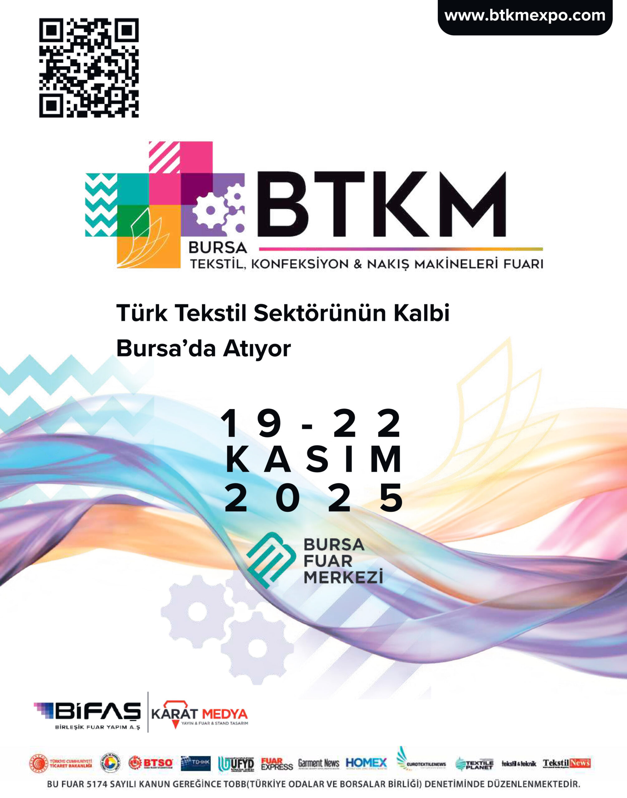 Bifaş Fuarcılık ve Karat Medya iş birliğiyle düzenlenen BTKM Fuarı, tekstil sektörünün geleceğine yön veren en önemli etkinliklerden biri olacak. 19-22 Kasım 2025’de Bursa Uluslararası Fuar ve Kongre Merkezi’nde görüşmek üzere!
